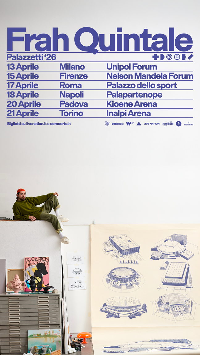 A febbraio Frah Quintale ha calcato il palco del Teatro Ariston esibendosi con Joan Thiele in occasione della serata delle cover della 75esima edizione del Festival di Sanremo. A distanza di pochi mesi dal duetto, l’artista ha ora annunciato la sua prima tournée solista nei palasport. Appuntamenti in programma a Milano, Firenze, Roma, Napoli, Padova e Torino.