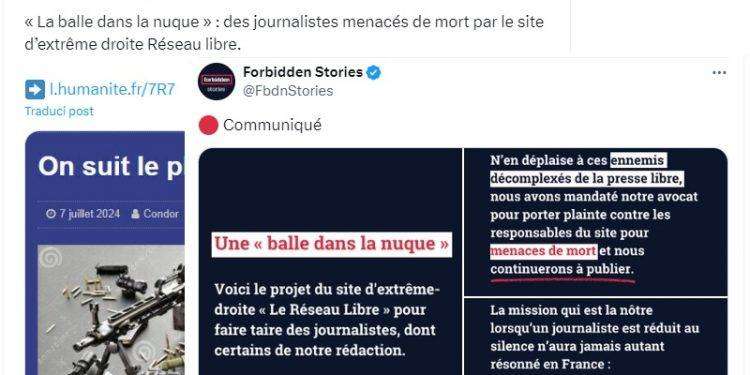 «Uno schermo non dà l’impunità agli aggressori, che devono essere perseguiti. Queste minacce mirano a mettere a tacere ognuno di noi, come cittadini, attivisti, sindacalisti o giornalisti. Non abbiamo paura e reagiremo!», il commento dei sindacati Snj, Snj-Cgt, Cfdt-Journalistes e Sgj-Fo.