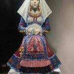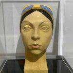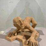 Hanno anime diverse i fratelli Melis, le ceramiche di Federico Melis sono fortemente identitarie, spettacolare è “L’agguato”, opera in Terracotta che ben figurerebbe nel Museo Archeologico di Cagliari, c’è un bronzetto che pare un gigante di Monti Prama, che si muove spaventato a carponi, quasi a sottintendere di sapere che qualcuno lo voglia abbattere (o scoprire?), l’opera è impressionante a maggior ragione, perché precede di dieci anni il ritrovamento della testa del gigante, sublimi e fuori dal tempo le sue ragazze desulesi, volti che mi pare d’avere sempre incrociato nei miei percorsi isolani; “La sposa antica” è il capolavoro, pezzo nella collezione dell’Università degli Studi di Cagliari, che in un’altra realtà meriterebbe la galleria dell’Accademia (che a Cagliari non è ancora mai stata), un vero virtuosismo ceramico, una cottura di un pezzo di un metro d’altezza, non a caso il Professore Giorgio Pellegrini, la paragona a un pezzo di Jeff Koons, che del marketing dell’arte come mestiere ha tracciato e definito a colpi di mass media il suo profilo artistico.