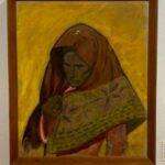 Melkiorre Melis è invece un pittore solido, la sua “Donna del Campidano” è un capolavoro di fusione di genere tra folk, ricerca d’avanguardia e accademia, notevolissima la sua “Sposa” del 1915, collezione Cavallini Sgarbi, all’avanguardia rispetto le ricerche grafico pittoriche contemporanee senza porre da parte la tradizione e la cultura identitaria d’origine, qualità che si ritrova anche ne “La Madonna di Loreto” del 1939. Le Decorazioni di Olimpia Melis sono trame e orditi che incantano per raffinatezza percettiva formale. Pino Melis nei suoi piccoli formati pare un monaco circense catapultato nel tempo della scuola del fumetto, i suoi lavori paiono essere fatti domani. Il percorso espositivo si conclude con una sezione “Quarta sponda”, che ci focalizza nell’Africa italiana al tempo dei Melis, ricordandoci cosa siamo stati storicamente e quanto forse oggi essere un paese di servitù militare statunitense a debito pubblico Europeo, forse ci tuteli rispetto la nostra memoria nazionale collettiva, Mario Mafai che artista è sempre stato prima che mestierante dell’arte, con i suoi “Tre polli” del 1937, metaforicamente espresse solidarietà al popolo Abissino, almeno mi piace pensare questo, piuttosto che sia “impietosa boutade l’indirizzo dei vinti e a maggior gloria dei vincitori” come suggerisce (più che discutibilmente) la curatela dell’esposizione.