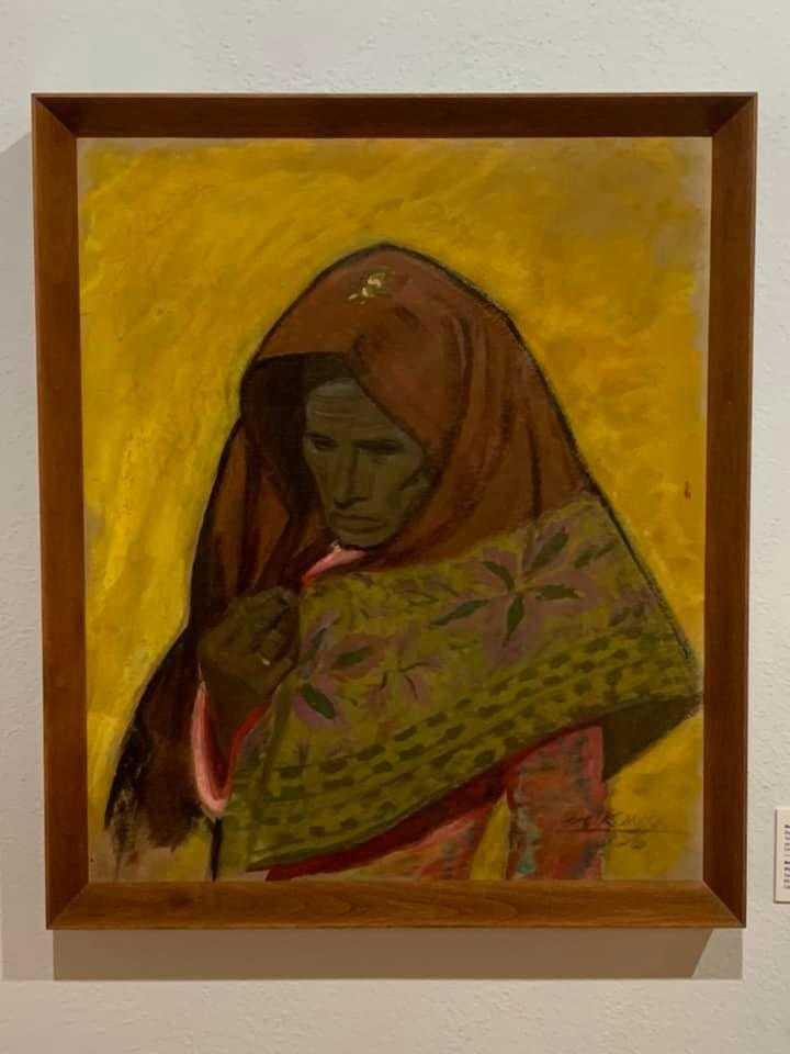 Melkiorre Melis è invece un pittore solido, la sua “Donna del Campidano” è un capolavoro di fusione di genere tra folk, ricerca d’avanguardia e accademia, notevolissima la sua “Sposa” del 1915, collezione Cavallini Sgarbi, all’avanguardia rispetto le ricerche grafico pittoriche contemporanee senza porre da parte la tradizione e la cultura identitaria d’origine, qualità che si ritrova anche ne “La Madonna di Loreto” del 1939. Le Decorazioni di Olimpia Melis sono trame e orditi che incantano per raffinatezza percettiva formale. Pino Melis nei suoi piccoli formati pare un monaco circense catapultato nel tempo della scuola del fumetto, i suoi lavori paiono essere fatti domani. Il percorso espositivo si conclude con una sezione “Quarta sponda”, che ci focalizza nell’Africa italiana al tempo dei Melis, ricordandoci cosa siamo stati storicamente e quanto forse oggi essere un paese di servitù militare statunitense a debito pubblico Europeo, forse ci tuteli rispetto la nostra memoria nazionale collettiva, Mario Mafai che artista è sempre stato prima che mestierante dell’arte, con i suoi “Tre polli” del 1937, metaforicamente espresse solidarietà al popolo Abissino, almeno mi piace pensare questo, piuttosto che sia “impietosa boutade l’indirizzo dei vinti e a maggior gloria dei vincitori” come suggerisce (più che discutibilmente) la curatela dell’esposizione.