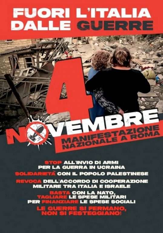 Stop all’invio di armi per la guerra in Ucraina; riconoscimento dello Stato Palestinese; revoca dell’accordo di cooperazione militare tra Italia e Israele; via l’Italia dalla Nato; tagliare le spese militari per finanziare le spese sociali; stop al genocidio a Gaza.