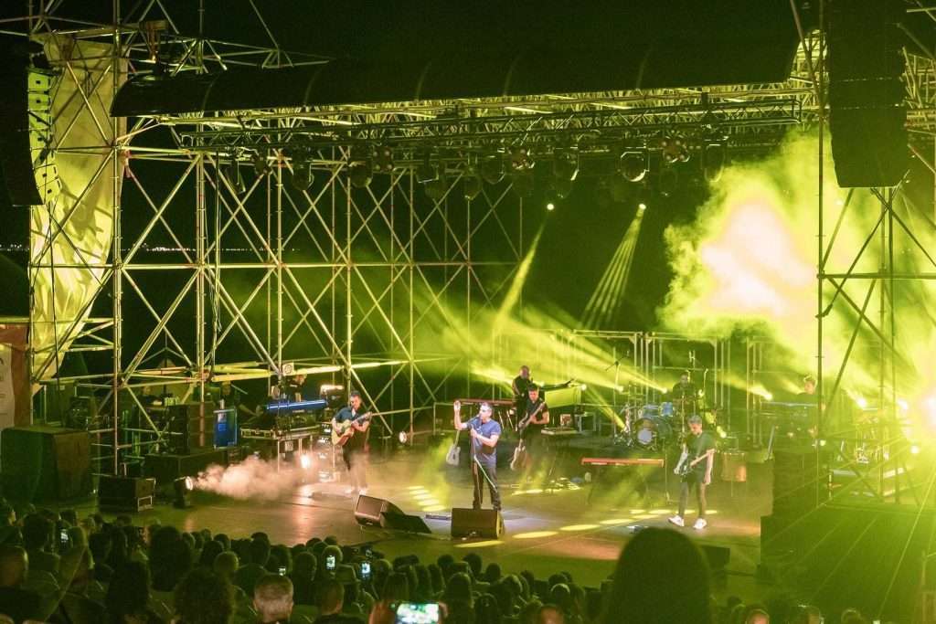 Ad accompagnarlo sul palco una band compatta e affiatata, composta da Lorenzo Bertelloni (piano elettrico), Leonardo Caleo (chitarra), Marco Baruffetti (chitarra), Filippo Gabbani (batteria), Giacomo Spagnoli (basso) e Will Medini (sintetizzatori e tastiere). Il pubblico ha seguito con entusiasmo, tra canti, applausi e balli spontanei che hanno attraversato l’intera platea affacciata sul mare.