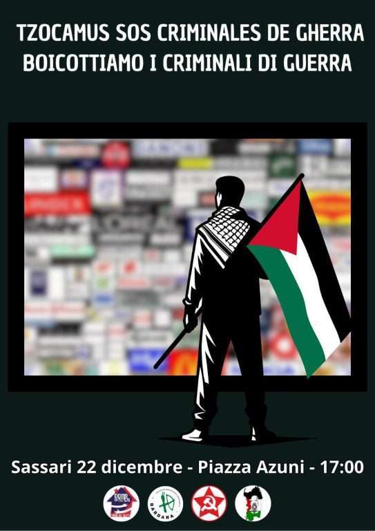 “Sarà distribuita ai cittadini una vera e propria lista delle realtà economiche e dei prodotti che hanno legami finanziari, militari, politici col governo israeliano che sta portando a compimento una vera e propria pulizia etnica, con lo sterminio di migliaia di donne e bambini innocenti”, spiega Fabrizio Cossu, presidente di Sa Domo de Totus.