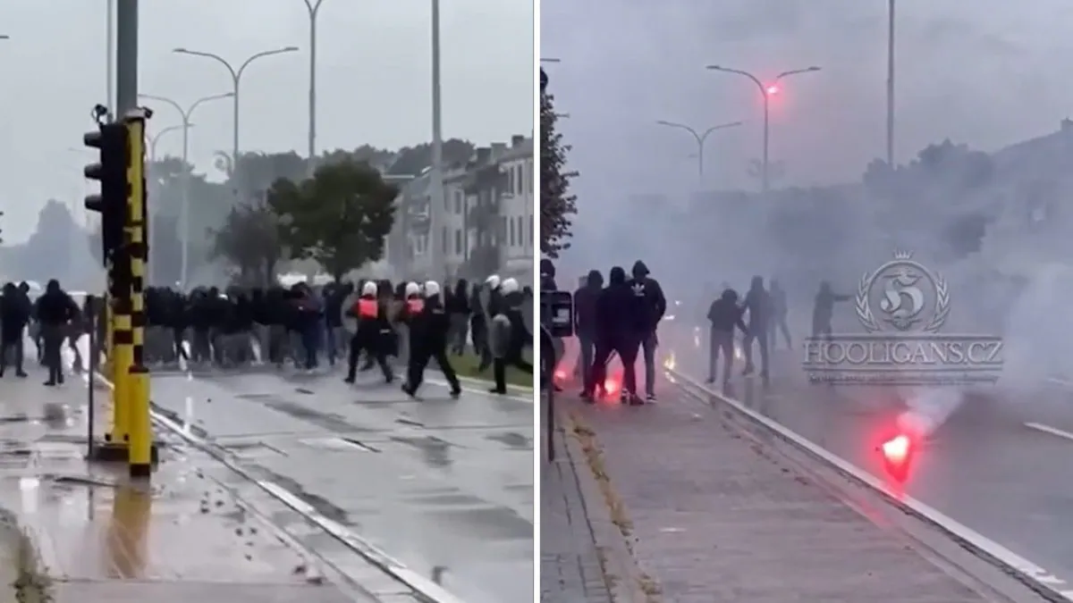 Scontri tra tifosi in strada prima del fischio d’inizio tra Genk e Fiorentina. I supporter belgi si sono incrociati con i viola per alcuni minuti lungo la strada che porta allo stadio Cegeka Arena.