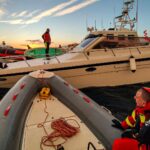 Le unità operative specialistiche dei Sommozzatori e della Sezione Navale dei Vigili del Fuoco, a bordo di due Battelli Pneumatici, partendo dalla sede del distaccamento porto dei Vigili del Fuoco di via Roma, hanno raggiunto l’imbarcazione della Guardia Costiera che aveva abbordato l’imbarcazione di 14 mt motorizzata.
