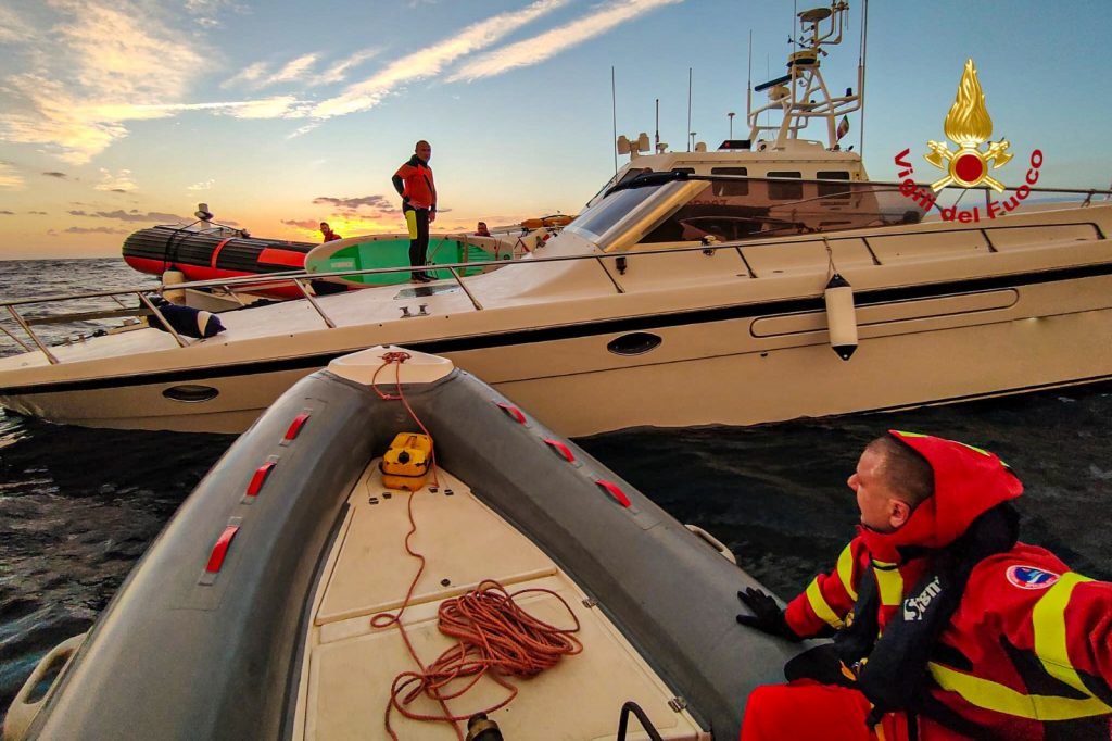 Le unità operative specialistiche dei Sommozzatori e della Sezione Navale dei Vigili del Fuoco, a bordo di due Battelli Pneumatici, partendo dalla sede del distaccamento porto dei Vigili del Fuoco di via Roma, hanno raggiunto l’imbarcazione della Guardia Costiera che aveva abbordato l’imbarcazione di 14 mt motorizzata.