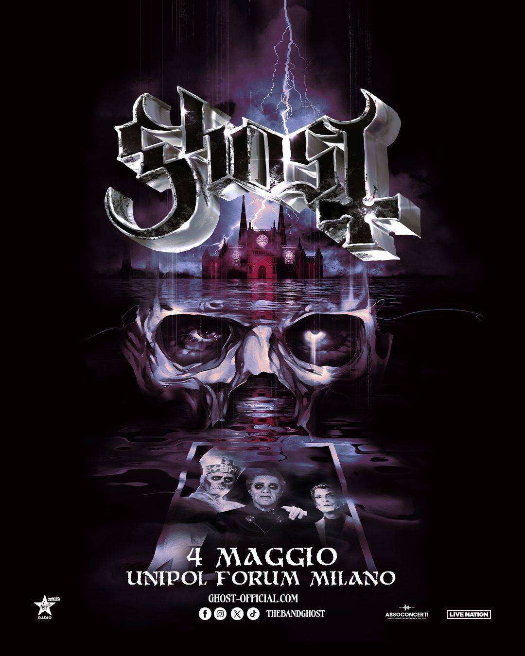 I Ghost arrivano in Italia con l’unico appuntamento italiano del loro World Tour 2025, domenica 4 maggio 2025 all’Unipol Forum di Milano. La rock band svedese vincitrice di un Grammy, conosciuta per gli spettacoli dal vivo di grande spessore, è pronta a infiammare il pubblico del nostro paese con uno show autentico colorato dai loro brani intensi e profondi.
