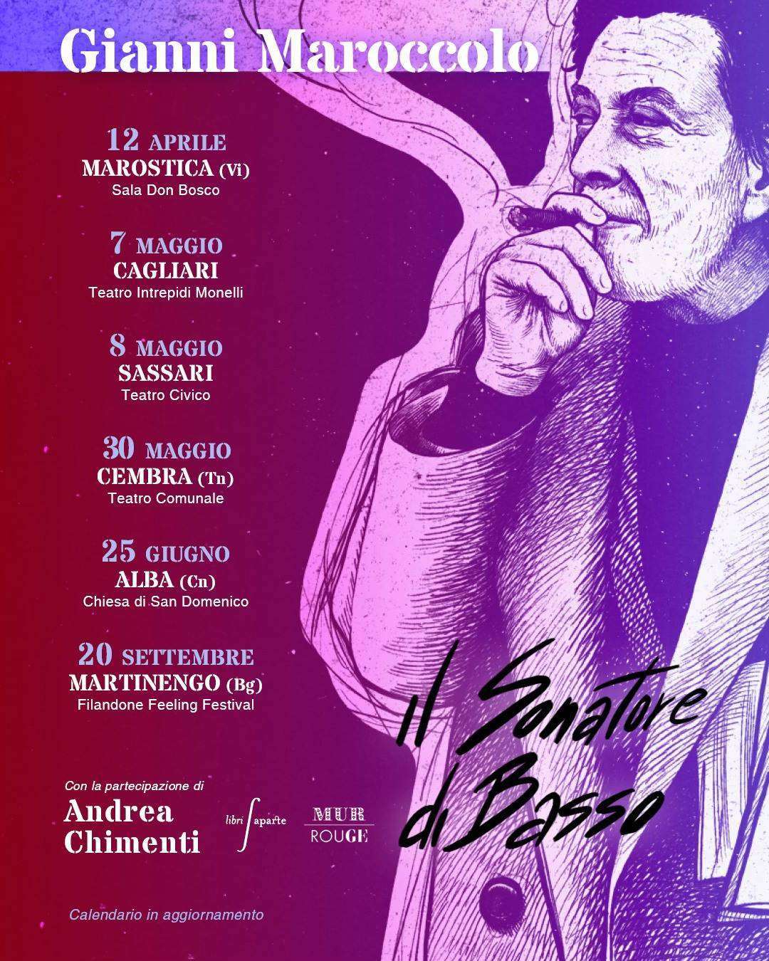 Sarà a Cagliari e Sassari, accompagnato per l’occasione dall’intensità della voce e dell’interpretazione di Andrea Chimenti.