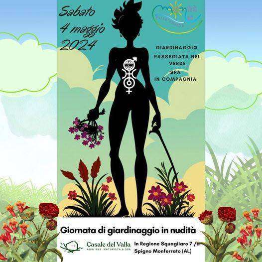 Sabato 4 maggio 2024, si svolgerà in provincia di Alessandria presso il Casale del Valla Agri b&b una giornata di giardinaggio e passeggiate in nudità.