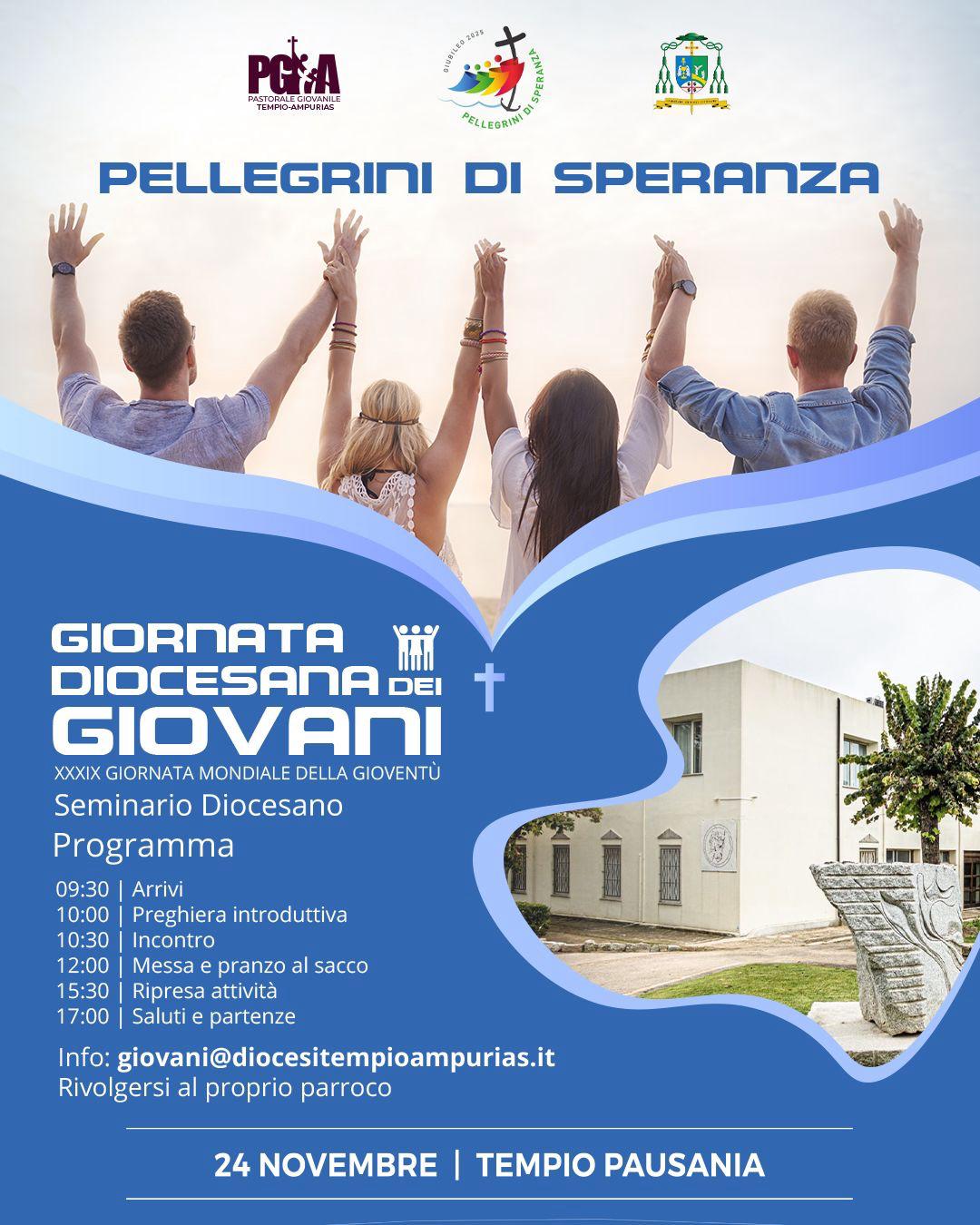 L’evento è organizzato da PG-Tempio-Ampurias – Servizio Diocesano di Pastorale Giovanile in collaborazione con il Servizio Diocesano di Pastorale Vocazionale, in occasione della 39° Giornata Mondiale della Gioventù. Obiettivo della giornata sarà quello di partire dall’ascolto dei ragazzi sulla loro realtà ed esperienza di vita, per poi confrontarci con loro sull’idea di Chiesa nell’intenzione di costruire insieme un futuro ecclesiale inclusivo e che sappia rispondere in maniera adeguata alle nuove esigenze educative. Tutto ciò nella prospettiva dell’inizio di un cammino giubilare che ci vedrà protagonisti nel 2025 a tema “Pellegrini di Speranza”. Ospiti dell’evento Manuel Mussoni, dirigente di una scuola paritaria e educatore professionale, che vanta esperienze pregresse nell’ambito di coordinamento dei giovani e come consigliere nazionale di Azione Cattolica (seguirà gli adolescenti) e Suor Mirella Ricci, dirigente di scuola paritaria esperta in coordinamento e accompagnamento di comunità protette (seguirà i giovani).