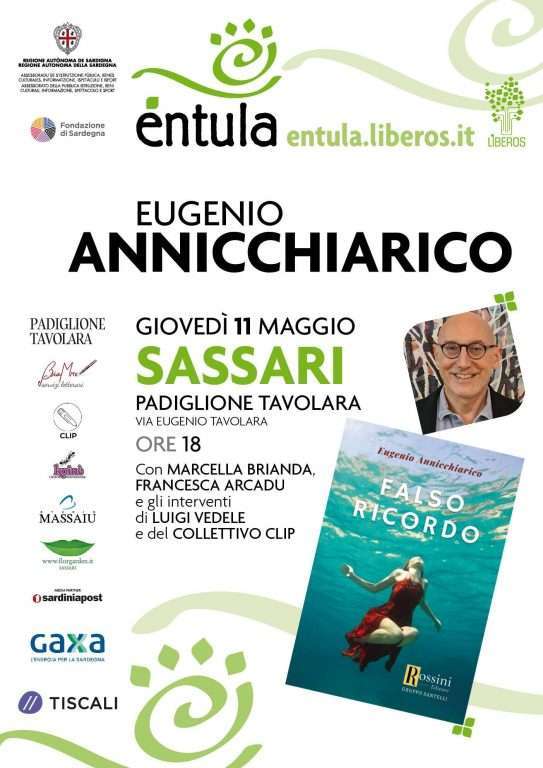 L’ultimo appuntamento della settimana con Éntula a Sassari è previsto per giovedì 11 maggio, con la presentazione di “Falso ricordo” (Rossini), il nuovo romanzo di Eugenio Annicchiarico. L’autore, manager pubblico che si occupa per professione di inclusione sociale e di politiche attive per il lavoro, è un membro del collettivo letterario Elias Mandreu, con il quale ha pubblicato due romanzi di genere noir – “Nero Riflesso” (Il Maestrale, 2009) e “Dopotutto” (Il Maestrale, 2010) – e il racconto lungo “Quattro Mori”, incluso nell’antologia Giallo Sardo (Piemme, 2020). Con Annicchiarico dialogheranno Marcella Brianda e Francesca Arcadu. Interverranno Luigi Vedele e il collettivo CLIP. Appuntamento al Padiglione Tavolara alle 18.