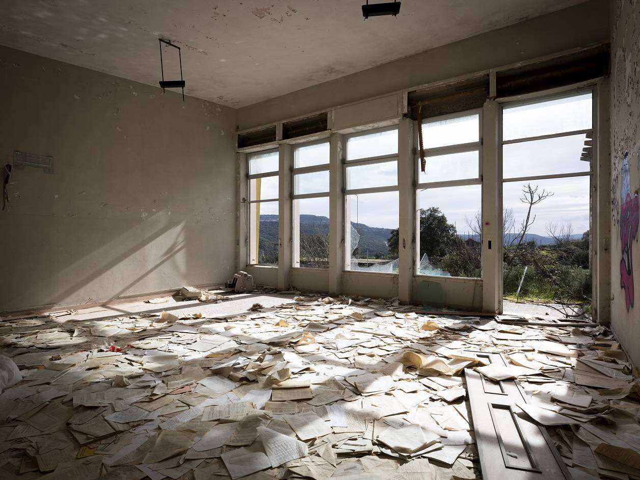 Il punto di partenza di Centola, fotografo professionista con un’esperienza ventennale (è autore, tra l’altro, di un reportage sul cementificio del Vajont e della serie fotografica sull’area ex Falck a Sesto San Giovanni- Milano), è la dicotomia “scuole abbandonate e abbandono nelle scuole” che funge da pretesto per un viaggio in Sardegna, tra i luoghi deputati a rispondere a un bisogno collettivo, ora abbandonati. Nei 22 scatti proposti ecco allora quella che fu la colonia estiva per bambini di Funtanazza (Arbus), la scuola che sorgeva nell’area mineraria di San Leone, (Capoterra), il sanatorio di Giorgino (Cagliari), sino all’ex orfanotrofio di Oristano, o all’antica tipografia di Cagliari.