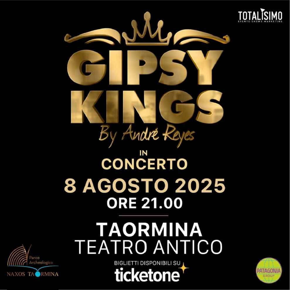 È ufficiale! La Patagonia Pictures ha annunciato la sola, esclusiva data italiana del loro tour mondiale: “GIPSY KINGS BY ANDRÉ REYES in concerto”. Venerdì 8 agosto 2025 ore 21.00 al Teatro Antico di Taormina (ME). Un imperdibile appuntamento che li vedrà protagonisti nella suggestiva cornice siciliana di uno dei luoghi più incantevoli del pianeta. Biglietti già disponibili su Ticketone.