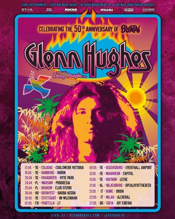 ‘Glenn Hughes suonerà i grandi classici dei Deep Purple Live – in occasione della Celebrazione del 50° anniversario dell’album “BURN“‘.