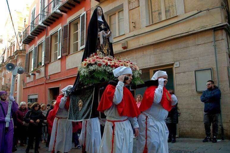 Il venerdì santo a Cuglieri gli uomini camminano per le strade del centro portando le candele mentre le donne cantano i gosos della Madonna addolorata e il Miserere, scrive Gian Mario Sias per l’Ansa.