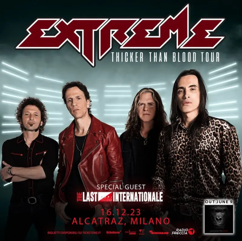 Grande ritorno in Italia per Extreme, iconica hard rock band americana che pubblicherà il 9 giugno il nuovo album “Six”. Il gruppo guidato dalla chitarra di Nuno Bettencourt e dalla voce di Gary Cherone sarà in concerto all’Alcatraz di Milano sabato 16 dicembre 2023 nell’unica data italiana del Thicker Than Blood Tour.
