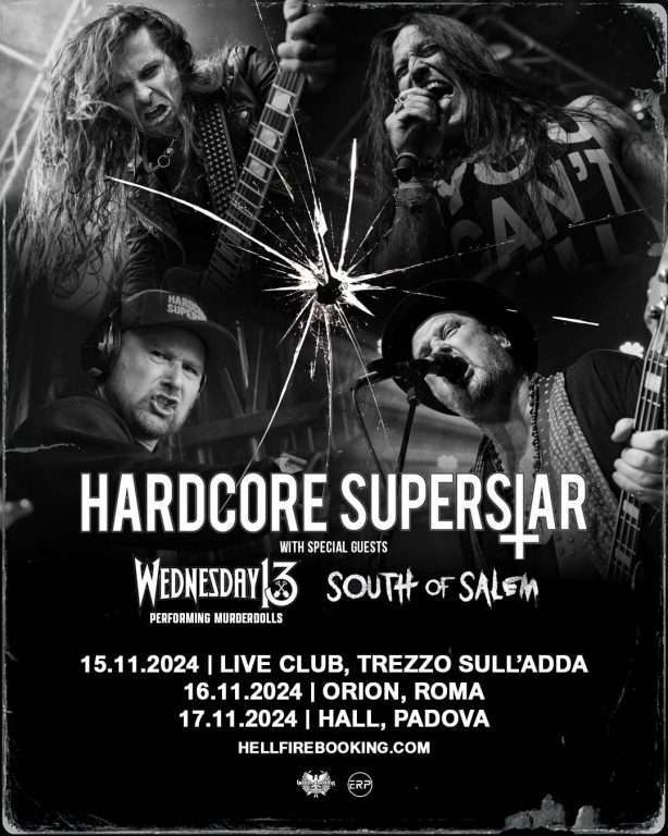 Nel corso degli anni, l’affetto verso di noi è cresciuto esponenzialmente, al punto che la band ha iniziato a chiamare il Bel Paese la sua seconda casa. Inutile dire che le scintille saranno infinite quando le fiamme d’amore verranno riaccese questo novembre, quando gli Hardcore Superstar si dirigeranno verso Milano, Roma e Padova per tre esclusivi concerti da headliner, accompagnati da Wednesday 13 e South of Salem.