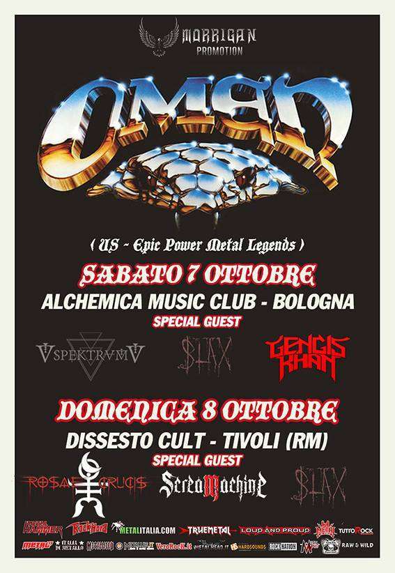 Morrigan Promotion è onorata di presentare due date in esclusiva per l’Italia di una vera e propria leggenda del metal americano, gli Omen. La band si esibirà Sabato 7 Ottobre presso l’Alchemica Music Club di Bologna e Domenica 8 Ottobre presso il Dissesto Cult di Tivoli.