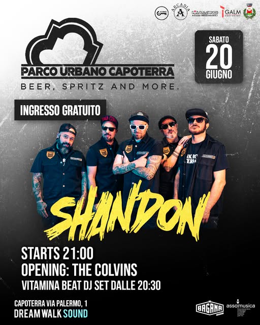 Sabato 20 giugno alle ore 20:00 al Parco Urbano di Capoterra prosegue il tour degli Shandon, storica band dello ska-punk italiano attiva dagli anni Novanta e tra i principali protagonisti della scena alternativa nazionale.