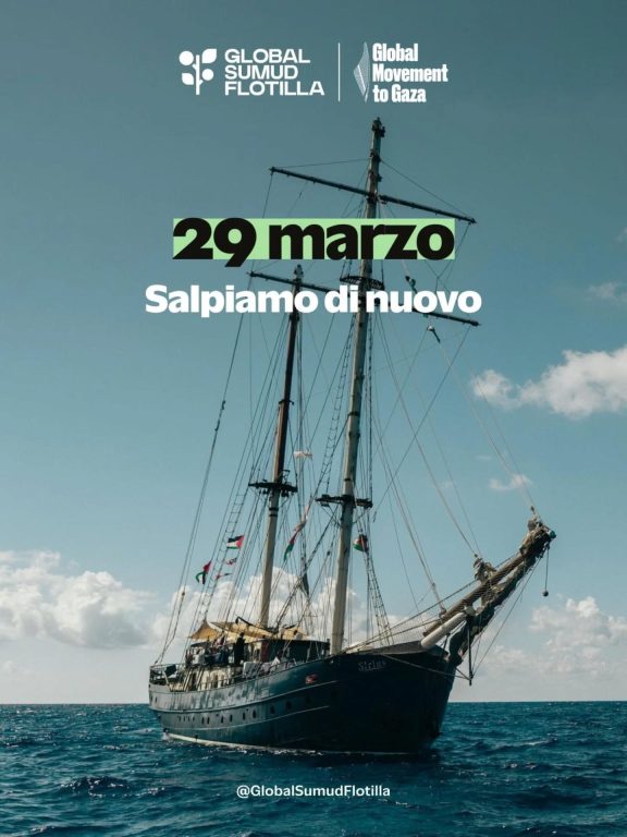 Domenica 29 marzo, una nuova missione della Global Sumud Flotilla salperà alla volta di Gaza.