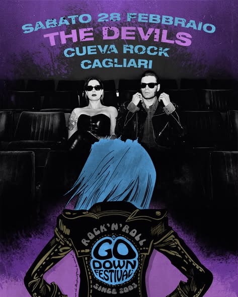 Go Down Festival arriva in Sardegna con due serate in programma il 27 e 28 febbraio. La band di punta della due giorni di festival saranno i The Devils.Formatisi a Napoli nel 2015, dal 2016 il duo composto da Gianni Blacula alla chitarra e voce, ed Erika Switchblade alla batteria e voce, ha continuato a essere in tour. Oltre 500 show in Europa, Regno Unito e Canada. 4 album all’attivo, il loro stile musicale è caratterizzato da un suono primitivo e un selvaggio liveset!