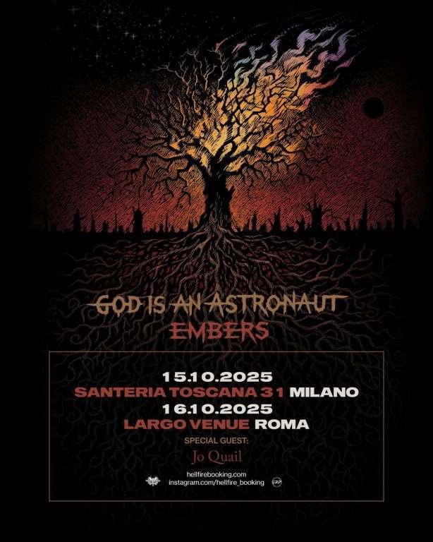 Dopo le loro due performance sognanti di quest’agosto, i God is an Astronaut, avvalsisi del sostegno di Jo Quail, tornano per due appuntamenti toccanti ad ottobre 2025. Credeteci quando diciamo che quest’anno non potrebbe mai volare abbastanza rapidamente.
