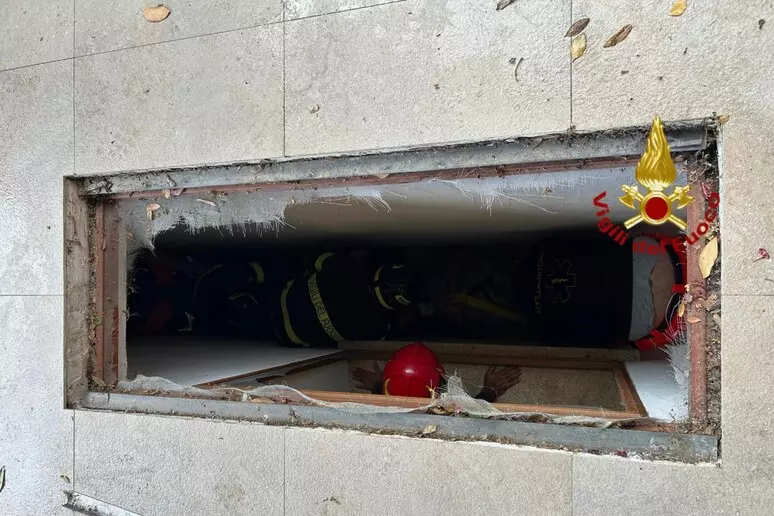 La 60enne, una volta estratta dall’intercapedine è stata affidata alle cure del personale sanitario.