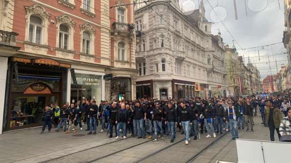Festa atalantina a Graz: un mare di tifosi verso lo Stadion Graz-Liebenau dove però prima della partita ci sono stati scontri con i tifosi di casa e con le forze dell’ordine.