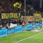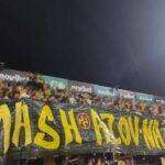 Lo striscione “Smash Azov Nazis” è stato esposto dalla curva dell’Aris Salonico durante la partita con la Dinamo Kiev.