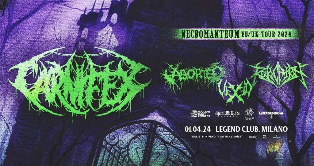 Una data da segnare in rosso sul calendario per gli appassionati di metal estremo. I Carnifex, tra le band protagoniste della scena deathcore contemporanea, annunciano il “Necromanteum EU/UK Tour 2024” che comprenderà anche una data in Italia.