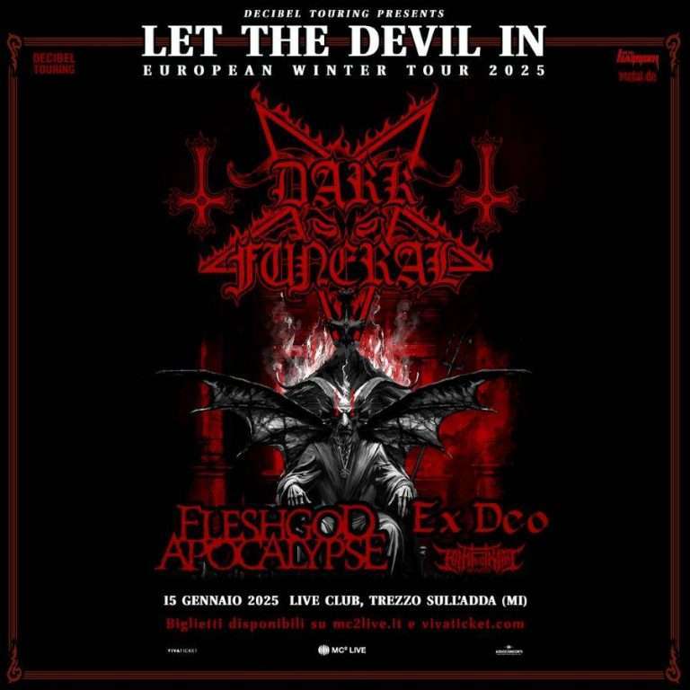 DARK FUNERAL dichiarano: “Sono passati otto lunghi anni dall’ultima volta che abbiamo fatto un vero e proprio tour da headliner in Europa, ma ora è giunto il momento. Unitevi a noi nelle buie notti invernali insieme a Fleshgod Apocalypse, Ex Deo e Kami No Ikari! Abbiamo appena festeggiato il nostro trentesimo anniversario e porteremo con noi una scaletta piena di oscurità e malvagità proveniente da tutti i nostri album!”.