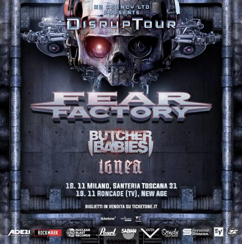 Guidati da Dino Cazares e con l’italiano Milo Silvestro dietro al microfono, Fear Factory saranno nel nostro Paese per due concerti che si terranno rispettivamente il 16 novembre a Milano (Santeria Toscana 31) e il 19 novembre a Roncade (TV, New Age Club).