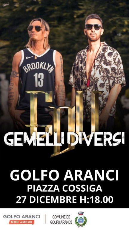 Il concerto dei Gemelli Diversi, organizzato dalla R&G Music di Renato e Gianni Piccinnu, è inserito nel ricco calendario messo a punto dall’amministrazione di Golfo Aranci, sempre attenta nella scelta dei momenti d’intrattenimento capaci di unire le generazioni.