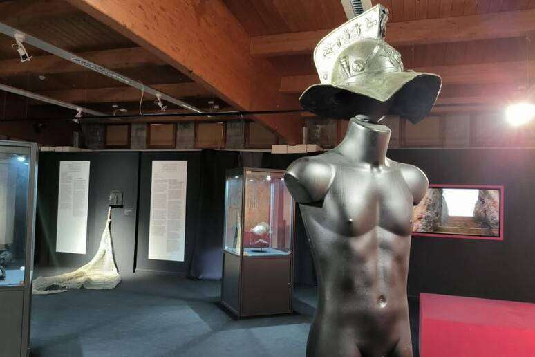 Ancora, lucerne con l’immagine del gladiatore in posa, “prodotti di merchandising di un business gestito da veri impresari – spiega Andreina Ghiani della Fondazione Barumini – Tre vetrine sono dedicate all’alimentazione, vegetariana e a base di zuppe di cereali e legumi, utili per formare uno strato di grasso per proteggere dai colpi gli organi vitali, quella del chirurgo poi mostra gli arnesi per curare e tenere in vita il guerriero”.