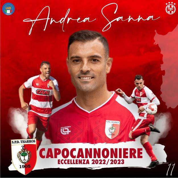 Infine nella Tharros grande campionato per Andrea Sanna, inossidabile bomber quarantenne, capocannoniere del campionato di Eccellenza regionale con 25 segnature.