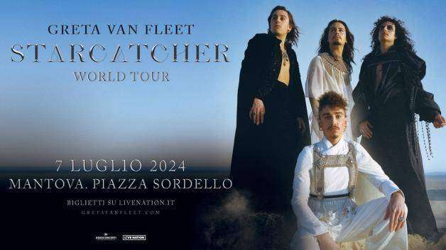Dopo lo strabiliante sold-out della data del 30 novembre all’Unipol Arena di Bologna, i Greta Van Fleet tornano in Italia con nuovo appuntamento il 7 luglio 2024 in Piazza Sordello di Mantova. La band americana capitanata da Joshua Kiszka vincitrice di un Grammy, fa subito ritorno nel nostro paese celebrando l’ultimo disco “Starcatcher”, uscito il 21 luglio.