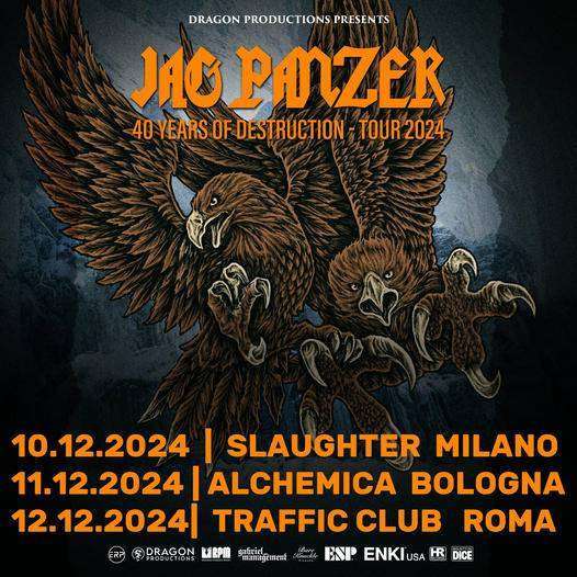 Per celebrare l’anniversario, i Jag Panzer torneranno in Europa e in Italia per dei concerti unici, con una scaletta che include le migliori canzoni della loro carriera lunga oltre 40 anni.
