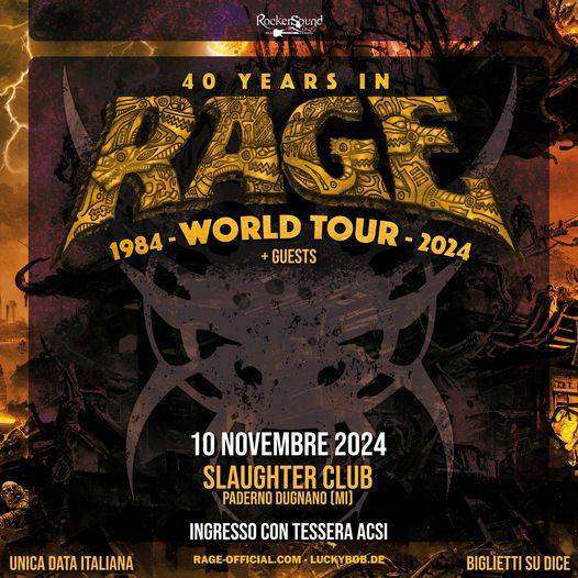 Arriva una data italiana del tour mondiale dei Rage, infatti domenica 10 novembre 2024 allo Slaughter Club di Paderno Dugnano (MI), i colossi tedeschi festeggiano i 40 anni di carriera con una unica data italiana.