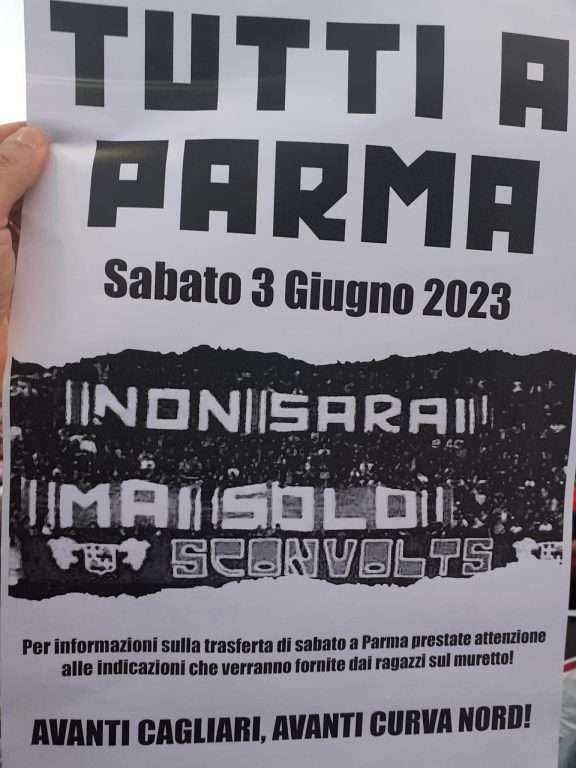 Ricordiamo che i tifosi del Parma, quelli del Centro di Coordinamento Parma Clubs, avevano rinunciato alla trasferta cagliaritana comunicando con dispiacere e rammarico che a causa dell’aumento sproporzionato del costo dei voli e della pochissima disponibilità e richiesta di posti si vedevano costretti ad annullare la trasferta di Cagliari.