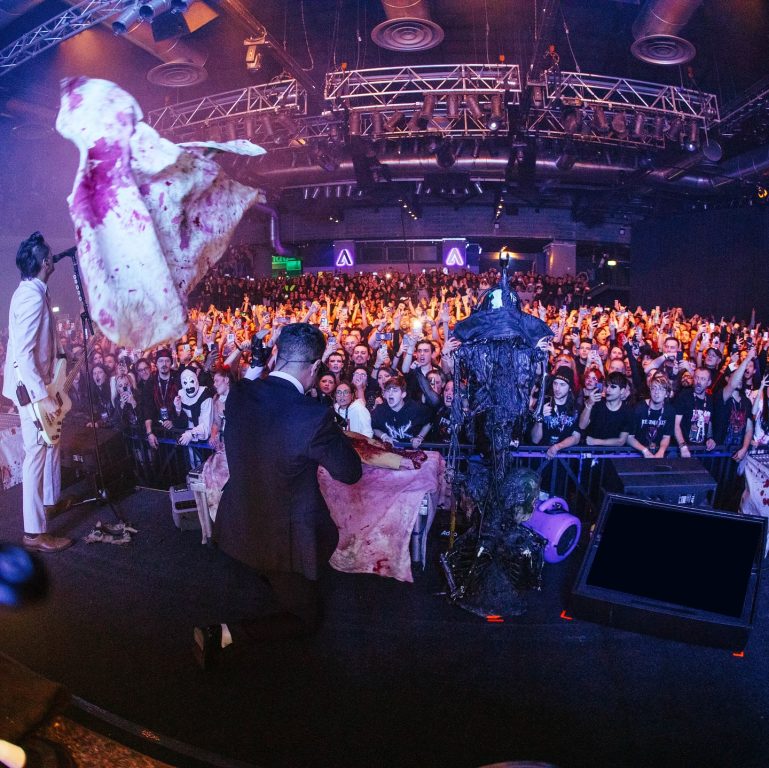 Sul palco, gli Ice Nine Kills sono pura teatralità: costumi, scenografie e performance curate nei minimi dettagli trasformano ogni concerto in uno spettacolo horror metal ad alto tasso adrenalinico.