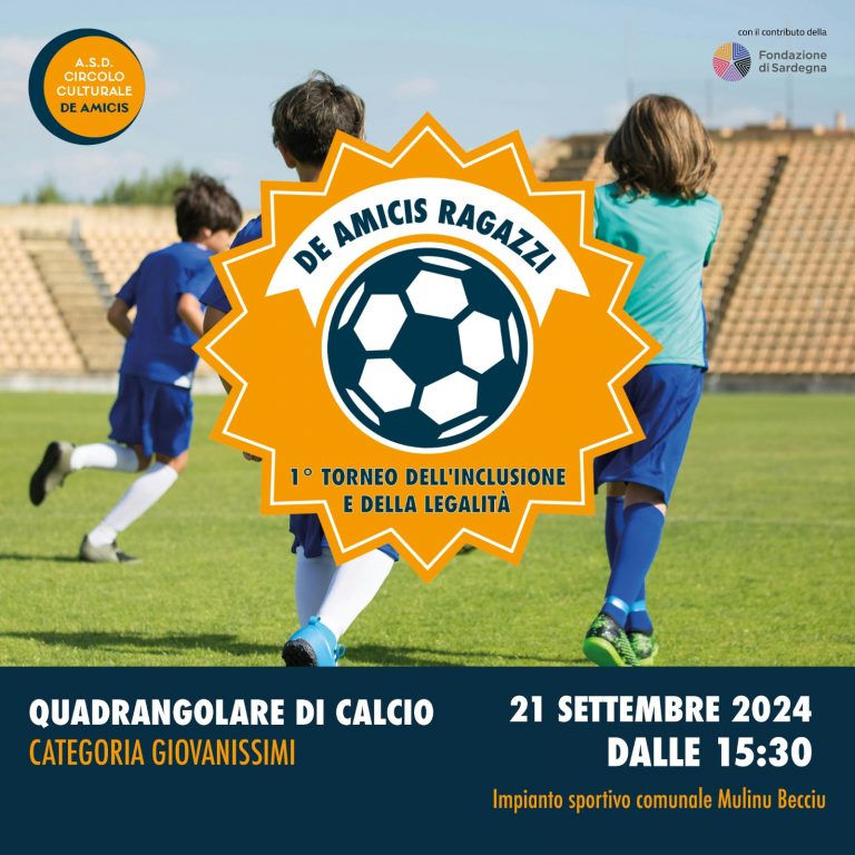 Inclusione, legalità, rispetto dei valori dello sport, amicizia e solidarietà. Sono le parole d’ordine del progetto promosso dall’ASD Circolo Culturale di Amicis di Cagliari che sabato 21 settembre, presso l’impianto sportivo comunale di Mulinu Becciu, ha organizzato un quadrangolare di calcio che vedrà come protagonisti gli atleti e le atlete (le squadre possono essere miste) della categoria giovanissimi del Calcio Pirri, del Calcio Capoterra, de La Palma Monte Urpinu e dell’Himalaya di Selargius. I protagonisti di “De Amicis ragazzi – 1° torneo dell’inclusione e della legalità” si sfideranno a partire dalle ore 15.30 con la prima semifinale (A.S.D. Calcio Pirri – ASD Calcio Capoterra). Alle ore 16.30 la seconda semifinale (La Palma Monte Urpinu – Himalaya Calcio Selargius), alle ore 17:30 la sfida per il terzo e quarto posto e, infine, alle 18:30 la finalissima per la conquista della coppa.