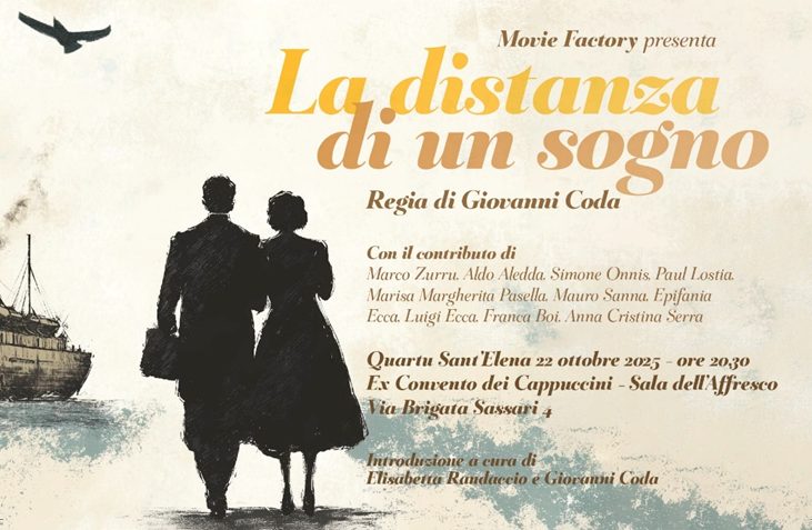 Il viaggio tra i ricordi, la nostalgia e la speranza, un racconto intimo di storie e di vite intrecciate alla ricerca di una vita migliore, di sogni che non potevano essere più trattenuti, lontano dalla propria terra. “La distanza di un sogno” (produzione Movie Factory), il nuovo progetto cinematografico di Giovanni Coda, una delle voci più riconoscibili del cinema d’arte e dell’impegno visivo italiano, racconta il fenomeno migratorio dalla Sardegna all’Australia attraverso testimonianze dirette e un lavoro di ricerche socio-culturali. Il documentario sarà presentato e proiettato in anteprima il 22 ottobre alle 20.30 a Quartu Sant’Elena, all’Ex Convento dei Cappuccini nella Sala dell’Affresco, in via Brigata Sassari, nell’ambito del 30° anniversario del V-Art – Festival Internazionale Immagine d’Autore. Introduzione in sala a cura di Elisabetta Randaccio e del regista.