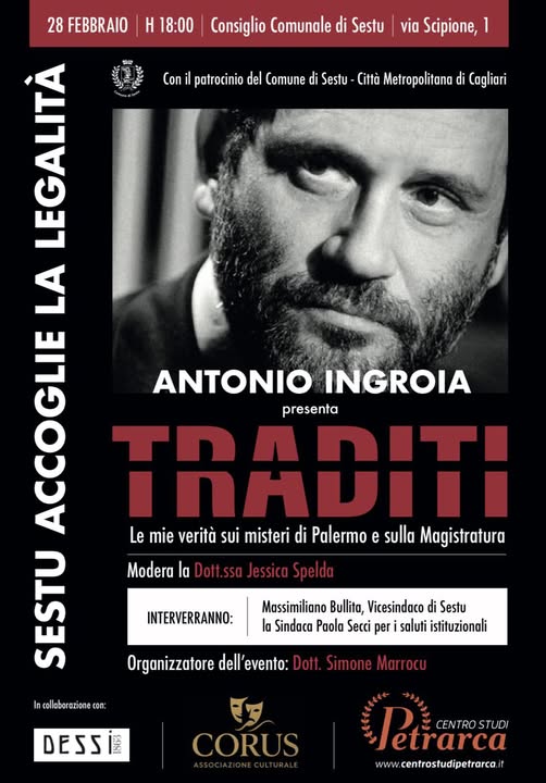 Antonio Ingroia torna in Sardegna per un nuovo appuntamento dedicato alla legalità, infatti il 28 febbraio, presso il Palazzo del Consiglio Comunale in via Scipione 1.