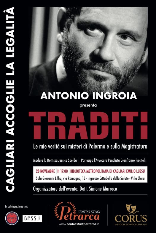 Cagliari accoglie un appuntamento importante dedicato alla legalità, infatti il 28 novembre, alla Biblioteca Metropolitana Emilio Lussu, sarà ospite l’Avvocato Antonio Ingroia che presenterà il suo libro “Traditi – Le mie verità sui misteri di Palermo e sulla Magistratura”.