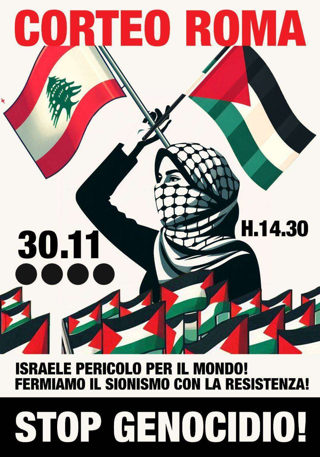 Palestina Libera! Intifada fino alla Vittoria”, conclude la nota dell’assemblea nazionale che ha lanciato il corteo del 30 novembre.