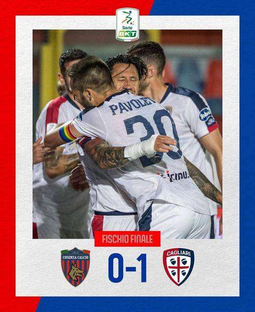 I calabresi non la riprendono, Cagliari corsaro e testa ai play off. Il Cosenza affronterà invece ai play out il Brescia per la permanenza in serie B. Con le già retrocesse Spal e Benevento retrocede in Lega Pro anche il Perugia.