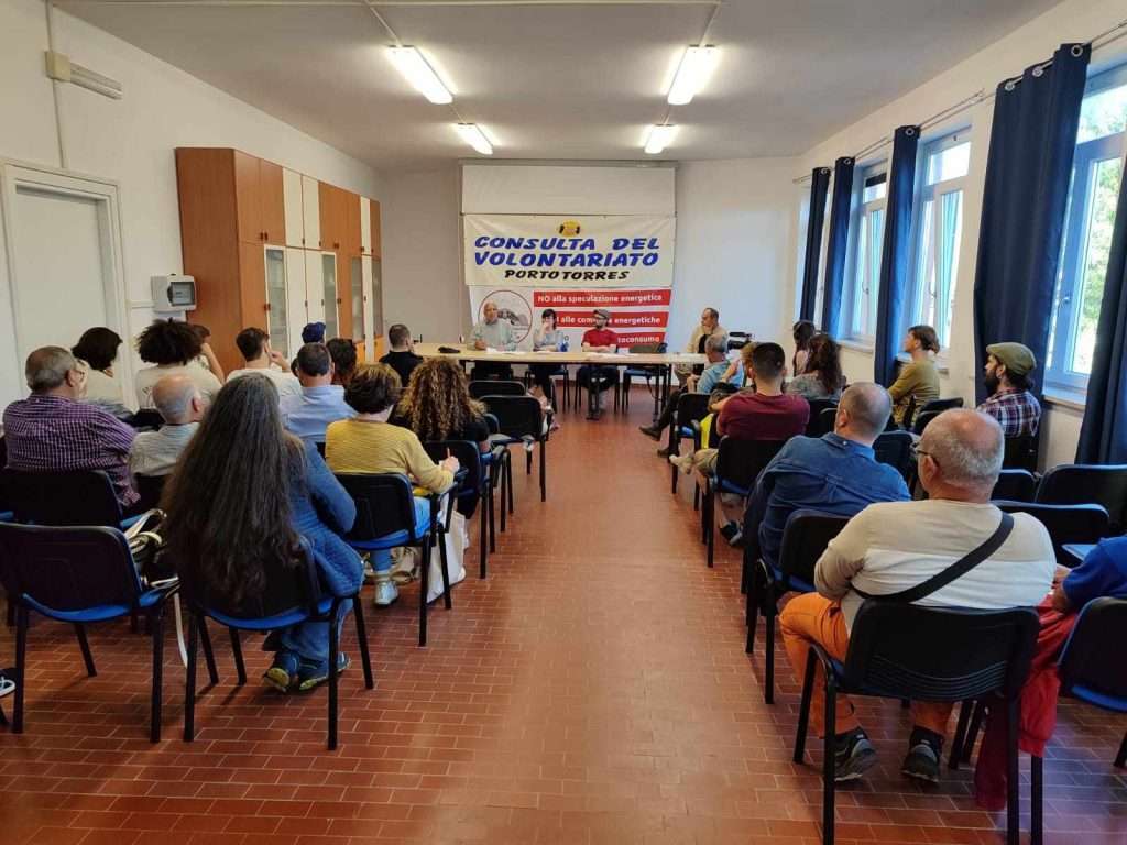 Così nei giorni scorsi alla chiamata del Comitato Nurra contro la speculazione energetica, i cittadini di Porto Torres hanno riempito la sala delle Casa delle Associazioni, in via principe di Piemonte. Al microfono si alternano i vari relatori, tutti esponenti del «Comitadu de sa Nurra. No ispeculatzione energètica» sciorinando con sicurezza dati allarmanti. In Sardegna, al 31 dicembre 2023, erano pervenute a Terna 756 richieste di connessione di impianti di produzione elettrica, per una potenza di 55,05 GW. Un’enormità se si pensa che al 2022 la produzione di energia elettrica in Sardegna è stata pari a 12.423 GWh (per una potenza efficiente lorda di 5,09 GW), con un esubero del 39,2% rispetto ai consumi.