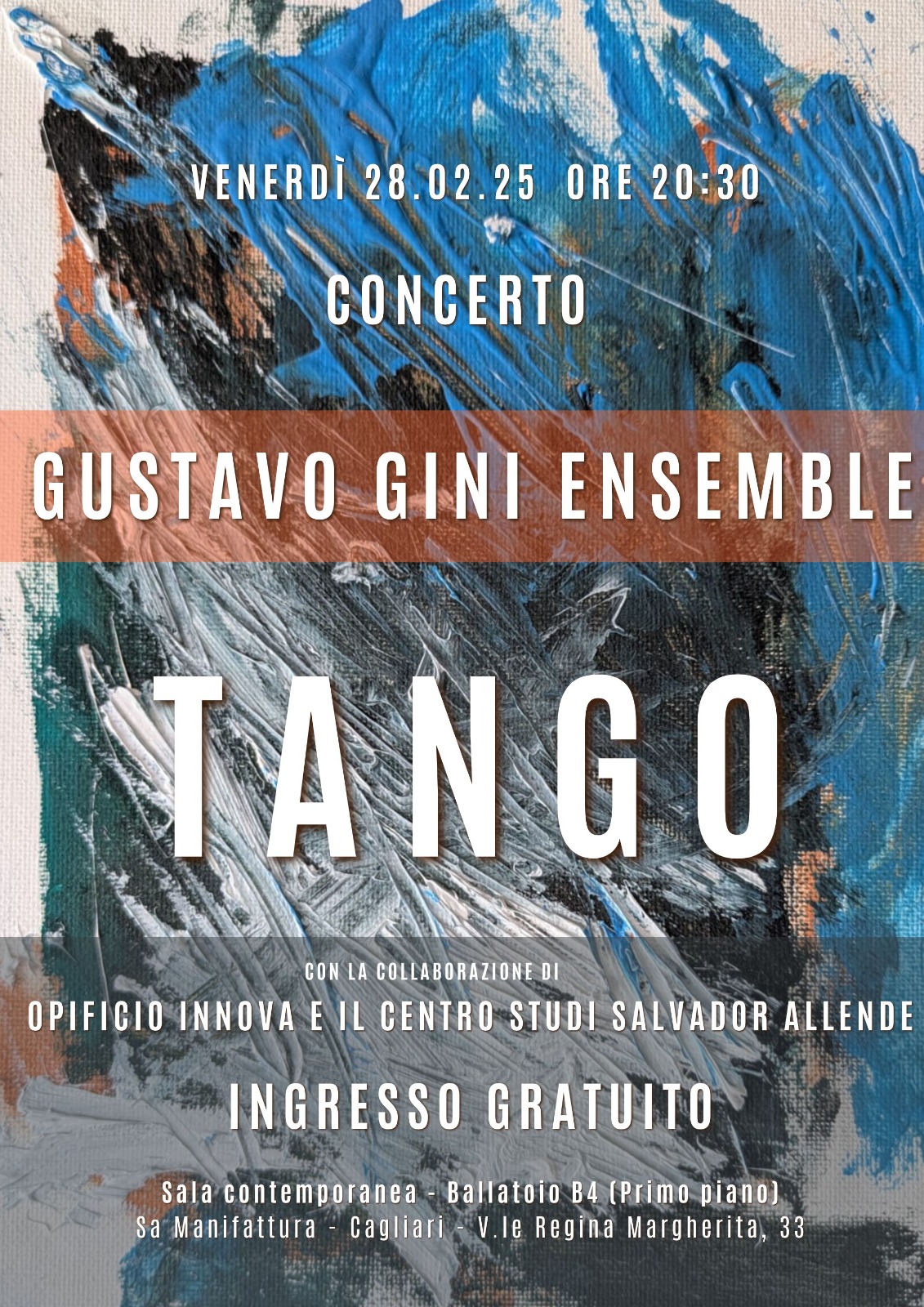 Venerdì 28 febbraio, alle ore 20:30, Sa Manifattura di Cagliari ospiterà un concerto imperdibile per gli amanti del tango e della musica d’autore. Grazie alla collaborazione tra Opificio Innova e il Centro Studi Salvador Allende, il pubblico potrà assistere gratuitamente all’esibizione del Gustavo Gini Ensemble, una formazione d’eccezione che unisce la potenza espressiva degli archi alla maestria del pianoforte.
