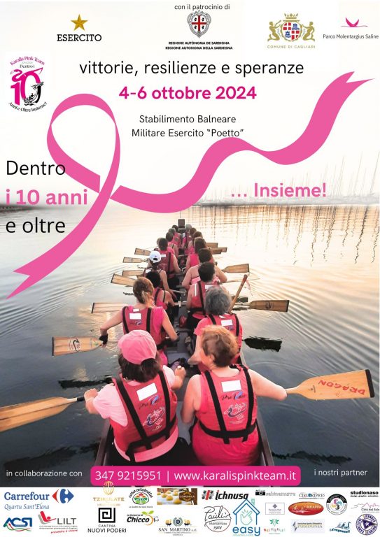 Guidate dalla Presidente Diana Sechi, le componenti della squadra di Dragon Boat hanno presentato gli appuntamenti nel fine settimana che va dal 4 al 6 ottobre 2024. Ospiti dello stabilimento balneare dell’Esercito Italiano al Poetto, le componenti del Karalis Pink Team saranno impegnate in un ricco programma di sensibilizzazione e prevenzione sul tema del tumore al seno.